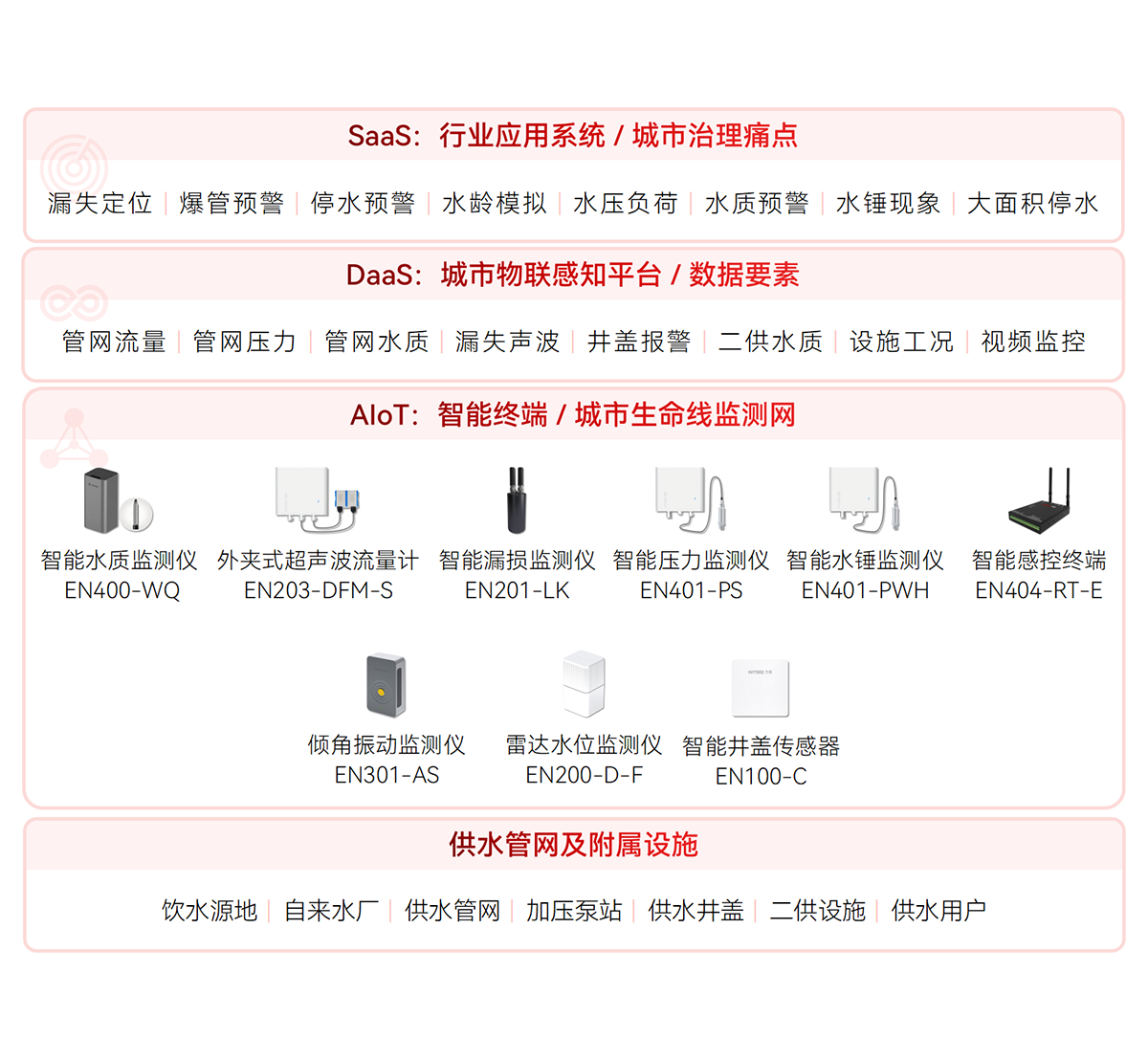 對(duì)供水管網(wǎng)設(shè)施及水質(zhì)提供實(shí)時(shí)監(jiān)測(cè),通過(guò)各類智能監(jiān)測(cè)終端保障供水壓力平衡、流量穩(wěn)定和供水安全,及時(shí)發(fā)現(xiàn)爆管并預(yù)警,避免大面積城市停水事故發(fā)生,為管網(wǎng)爆管預(yù)警分析、用水趨勢(shì)分析和泄漏量預(yù)警分析提供數(shù)據(jù)支撐。